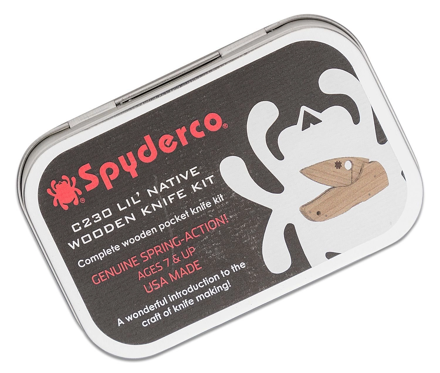 A Spyderco Lil' Native fa építőkészlet a legendás zsebkés élethű, teljes méretű modelljét kínálja, teljesen élezett penge nélkül. Átgondolt felépítésének köszönhetően ugyanúgy szerelhető össze, mint egy valódi kés, így gyermekek és felnőttek egyaránt biztonságosan megismerhetik a mechanizmus működését és fejleszthetik finommotorikájukat.