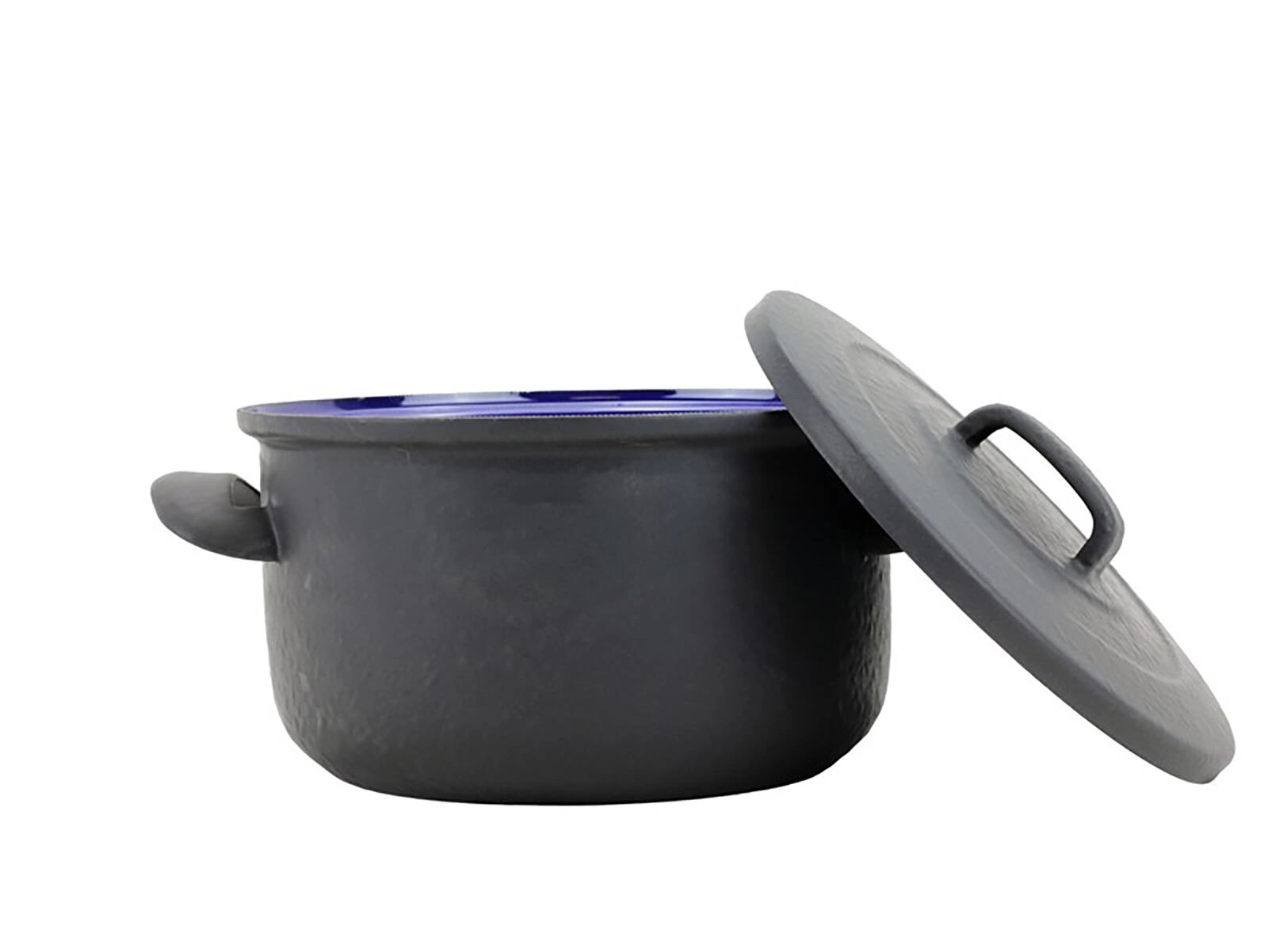 A sötétkék zománcozott belső sima, nem porózus és karcálló. Gátolja a baktériumok elszaporodását, és mosogatógépben is mosható.