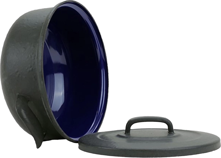 A sima, sötétkék zománc könnyen tisztítható, nem porózus, nem szívja magába a szagokat, és nem bocsát ki vegyi anyagokat. Biztonságos választás családoknak és allergiásoknak.