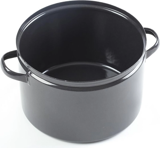 A nagy kapacitású, BELIS Standard 30 l zománcozott fazék 40 cm-es átmérővel ideális nagy adag levesek, alaplevek és mártások főzéséhez. A minőségi, fekete pettyezett zománc révén egészségre ártalmatlan, kiválóan vezeti a hőt, és könnyen tisztítható. Alkalmas minden típusú tűzhelyhez, beleértve az indukciósat is, és strapabíró lemezből készül 0,8–1 mm vastagságban.