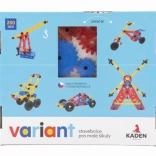 A kreatív VARIANT építőkészlet 280 műanyag elemmel órákra nyújt szórakozást és tanulást a gyerekeknek. Tartalmaz csavarokat és anyákat valódi szerkezetépítéshez, valamint 2 fogaskereket lánccal (50 szem). Fejleszti a finommotorikát, a térbeli képzelőerőt, a logikus gondolkodást és a türelmet. Praktikus dobozban tárolva.