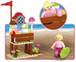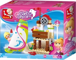 Sluban Girls Dream Szörfös Nyaralás Építőkészlet ideális kis építők és kreatív lelkek számára. Az innovatív figurákkal, amelyek forgatható és hajlítható részekkel rendelkeznek, és más márkákkal is kompatibilisek, ez az építőkészlet nagyszerű szórakozást kínál a 6 éves és idősebb gyerekeknek.