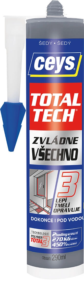 A CEYS TOTAL TECH új generációs hibrid építőipari tömítő és ragasztó, amely megbirkózik a szerelésekkel, ragasztással és tömítéssel a legigényesebb körülmények között is. Ultraelasztikus összetételének (akár 420%) köszönhetően ellenáll a repedéseknek, vibrációnak és ütődéseknek, és tartósan rugalmas marad. Vízálló, erős és hosszú élettartamú kötéseket hoz létre, amelyek ellenállnak az UV-sugárzásnak, a penésznek és a szélsőséges hőmérsékleteknek.