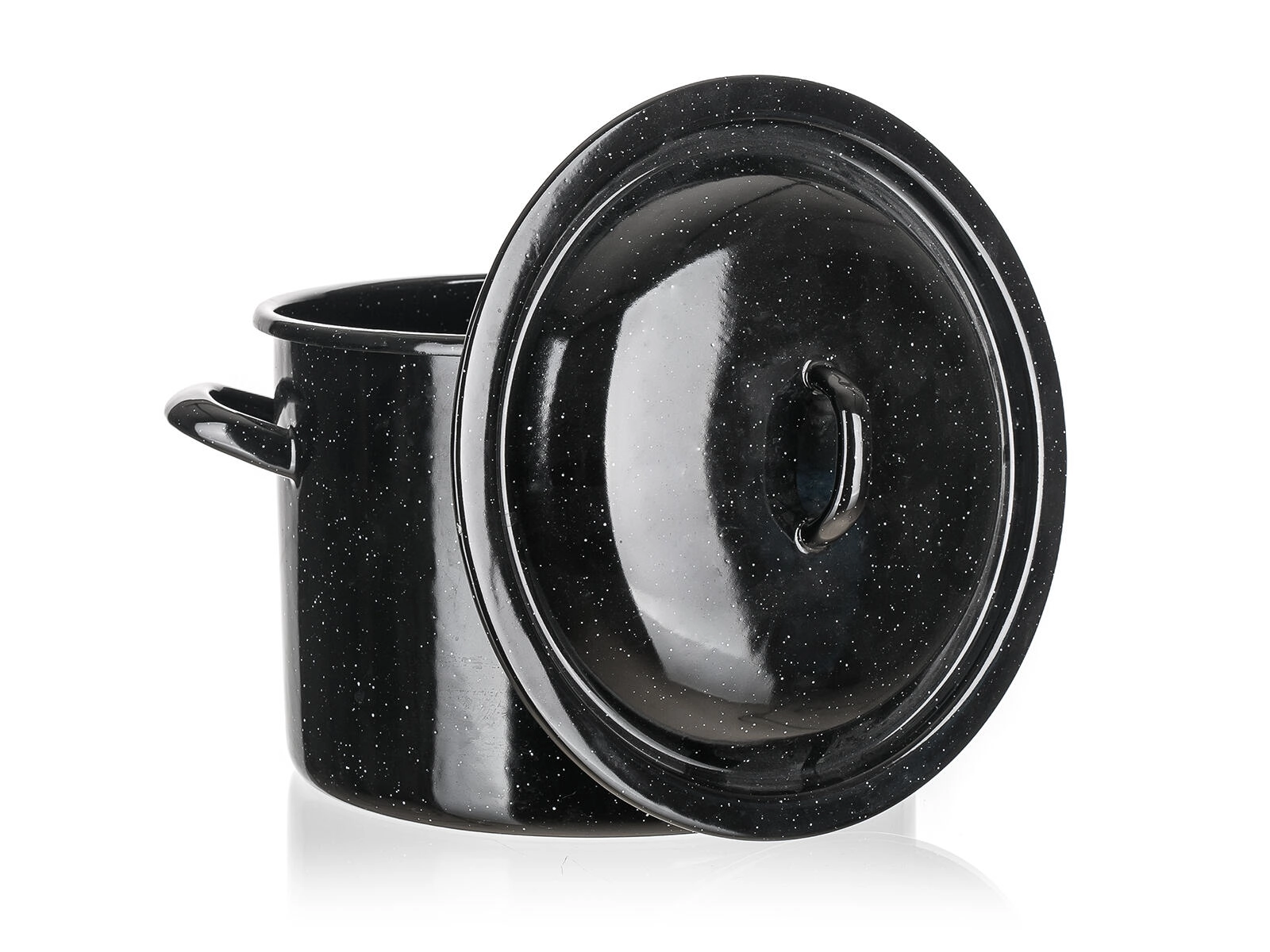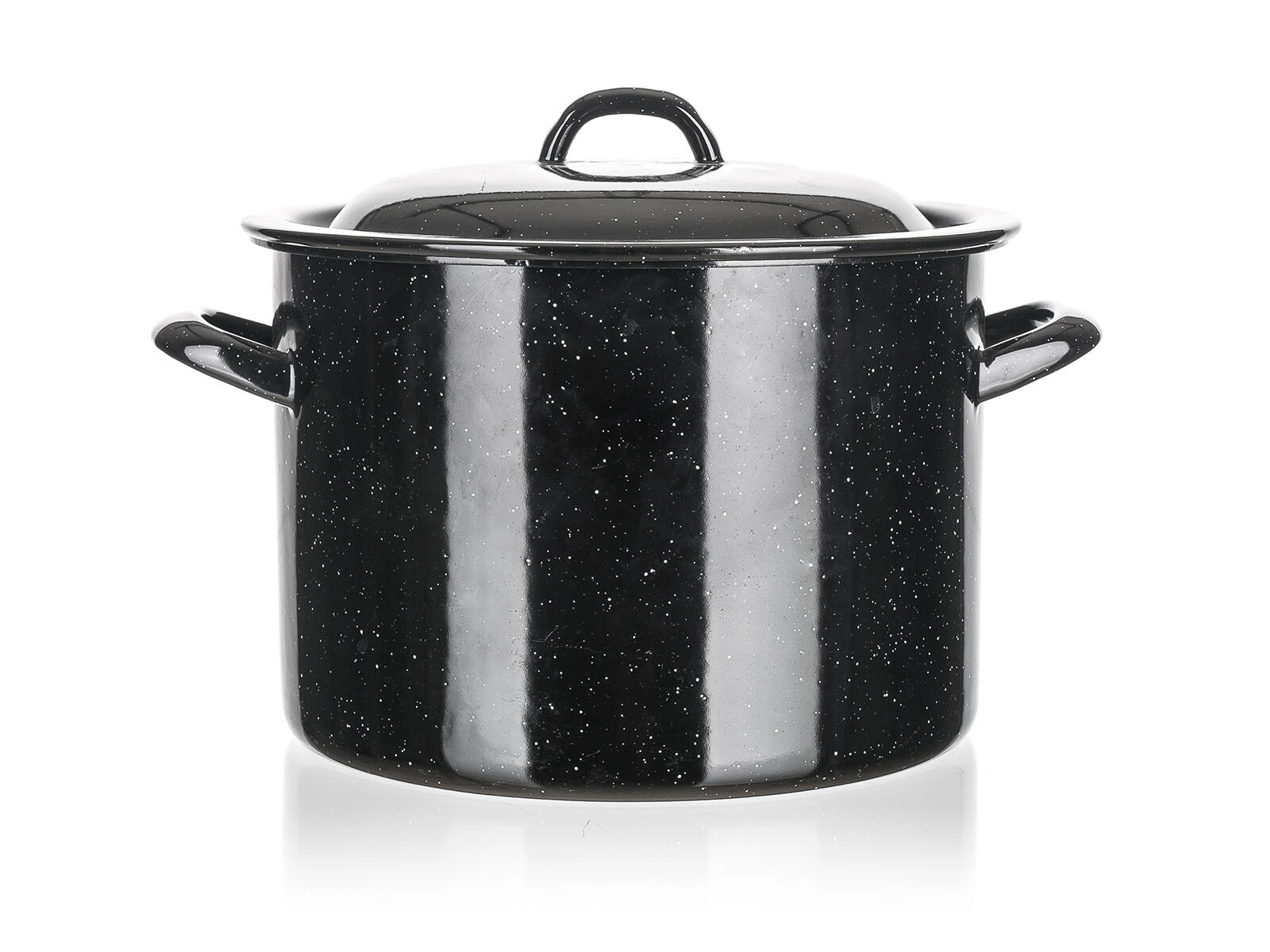 Praktikus, fedővel ellátott 5,5 l űrtartalmú és 22 cm átmérőjű zománcozott fazék, ideális levesek, mártások készítéséhez és pároláshoz. A tartós zománcozott felület könnyen tisztítható, a fedő megtartja a hőt és a nedvességet, a masszív fogantyúk pedig biztonságos kezelést biztosítanak. Minden típusú tűzhelyhez alkalmas, indukció kivételével.