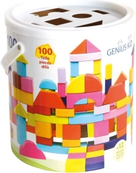 A vödörben 100 különböző alakú színes kocka található, amelyek hosszú órákra lekötik a gyerekeket. A vödör fedele beillesztő játéként is szolgál, ami segít a gyermekeknek a különböző formák felismerésében és a finommotorika fejlesztésében.