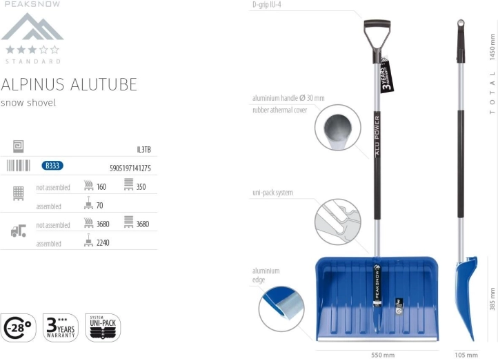 Praktikus hólapát a hó gyors és kényelmes eltakarításához. A 55 × 38 cm-es méretnek köszönhetően nagy munkaszélességet kínál, ergonomikus, termo markolattal a kényelmes fogásért, valamint strapabíró műanyag lapáttal, amely fagyott hóhoz is alkalmas.