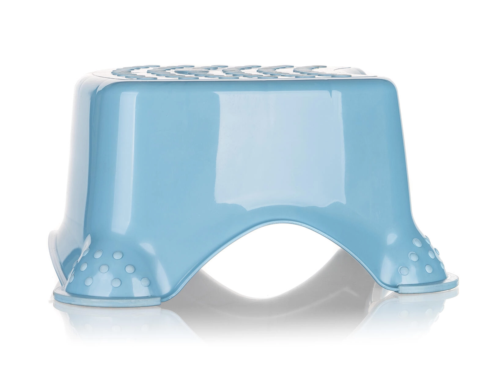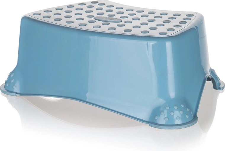 Ez a praktikus, kék fellépő ideális segítőtárs a fürdőszobában, gyerekszobában és a konyhában is. A felső felület csúszásgátló pontjai és a gumírozott lábvégződések biztos lépést nyújtanak különféle padlótípusokon. A 40,5 × 28,5 × 14 cm-es kompakt méretnek köszönhetően könnyen befér a mosdó alá vagy a sarokba.