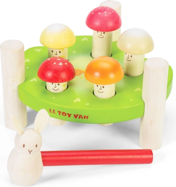 A játék fejleszti a motorikus képességeket azáltal, hogy a gyerekek a kalapáccsal kalapálják a gombákat. A színes minták és formák vizuális érzékelést is serkentik.