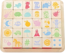 A LE TOY VAN Petilou készlet ideális fejlesztő játék 12 hónapos kortól. Minden kocka egyedi, kézzel szitázott mintával, és különböző oldalain betűket, számjegyeket, formákat, állatkákat és szimbólumokat kínál. A robusztus gumifa és a vízbázisú festékek révén a kockák tartósak, biztonságosak és kellemes tapintásúak.