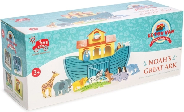 Elbűvölő Noé bárkája a Le Toy Van-től egyedi módot kínál a gyerekek számára, hogy megismerjék Noé bárkájának történetét, miközben kreatív játékot élvezhetnek. Ez a nagy bárka tíz pár kézzel festett állatot és emberi figurát tartalmaz, amelyeket szintén környezetbarát festékekkel festettek le. A bárka elhúzható panellel rendelkezik az elülső részen és nyitható ajtókkal oldalán, amely megkönnyíti a figurák elérhetőségét.