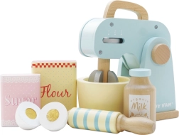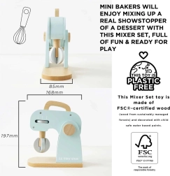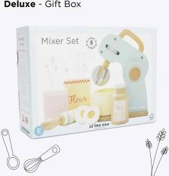 A stílusos Le Toy Van konyhai robot hiteles sütési élményt nyújt a gyerekeknek a játék konyhájukban. A forgó habverőnek, a fa nyújtófának és a tálnak köszönhetően „süthetnek” tortát, kekszet vagy piskótát. A pasztell színek és a retró design gyönyörködtet, míg a minőségi fa kivitel hosszú élettartamot biztosít.