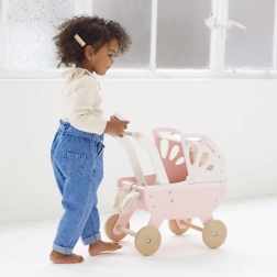 A babakocsi FSC tanúsított fából készül, kézzel utófestve környezetbarát, vízbázisú festékkel, és úgy tervezték, hogy hosszú évekig tartson – ideális darab generációról generációra való továbbadásra. Támogatja a képzelőerőt, a szociális és verbális készségeket, valamint a kognitív fejlődést.