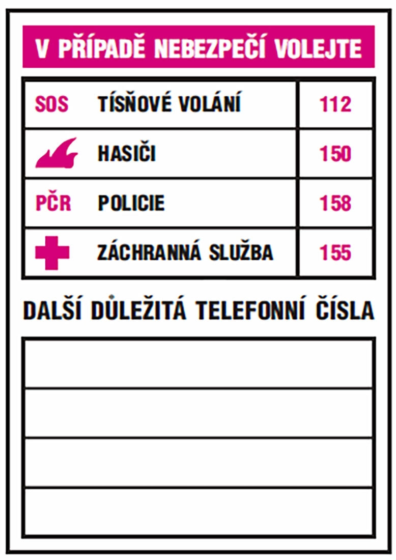 Könnyítse meg a krízishelyzeteket ezzel az áttekinthető táblával, amely helyet kínál a legfontosabb kapcsolatoknak – integrált mentőszolgálatok, orvosi ügyelet, hibabejelentő vonalak vagy személyes kapcsolatok. A kompakt 74 × 105 mm-es méretnek köszönhetően oda helyezheti, ahol mindig szem előtt lesz.