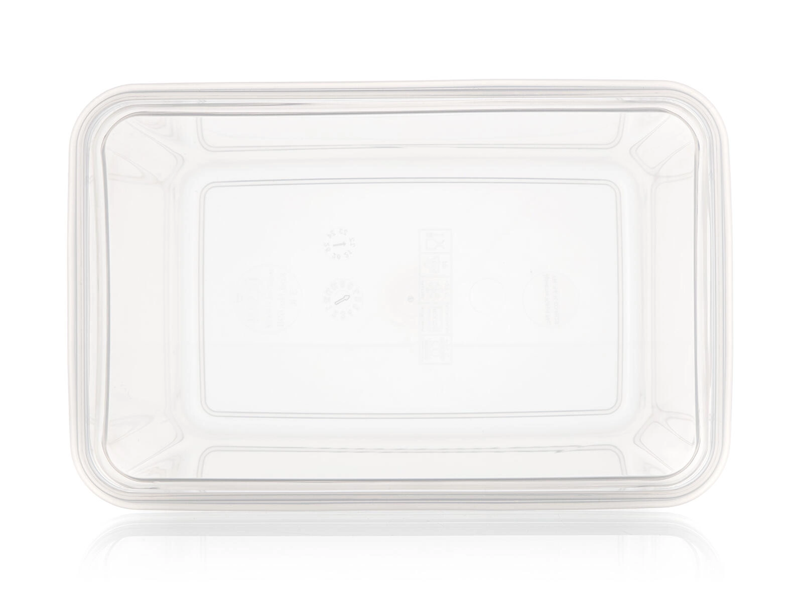 Az átlátszó falaknak köszönhetően azonnal látható a tartalom, a téglalap alakú forma pedig helytakarékos a hűtőben és a fagyasztóban.