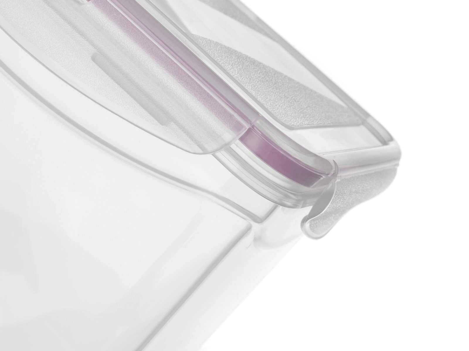 A téglalap alakú, rózsaszín szilikon tömítéssel ellátott LARA műanyag dobozt mindennapi konyhai használatra tervezték. A légmentes zárásnak köszönhetően megbízhatóan megőrzi az ételek frissességét, illatát és ízét, valamint megakadályozza a folyadékok kifolyását. Az átlátszó test lehetővé teszi a tartalom gyors ellenőrzését a fedél felnyitása nélkül.