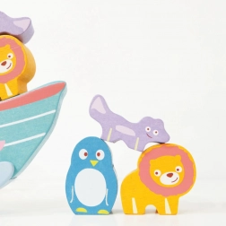 Ez a gyönyörűen színes egyensúlyozó bárka tíz kézzel festett állatot tartalmaz, amelyeket a gyerekek a hajóra helyeznek, erősítve a kéz-szem koordinációt és az ügyességet. Az állatkák és a hajó szett fenntartható FSC fából készült, és vízbázisú, nem mérgező festékkel színezett.
