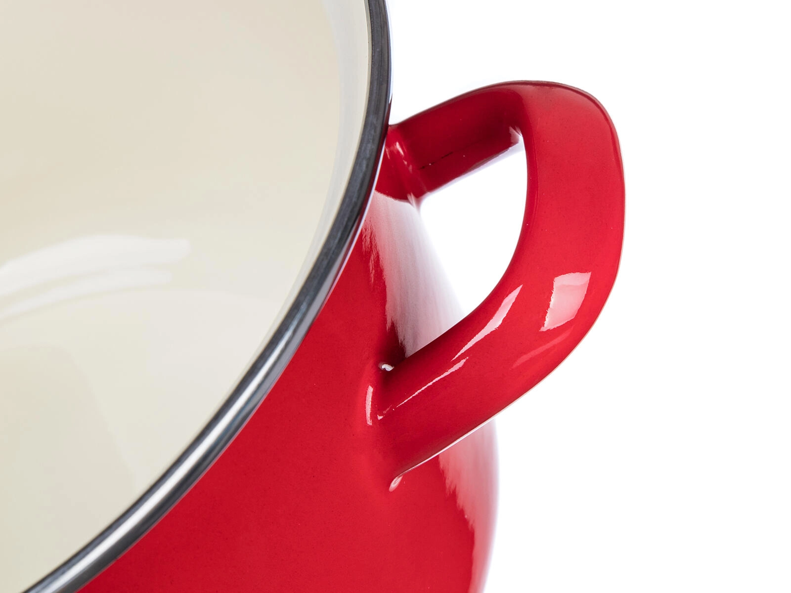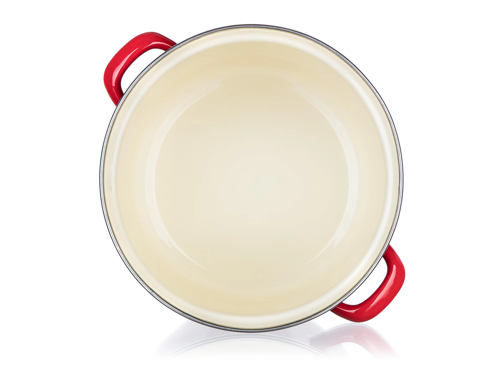 Az elegáns piros máz krémszínű belsővel bármely konyhai stílushoz illik, a világos belsőnek köszönhetően pedig jobb rálátást biztosít a főzésre.