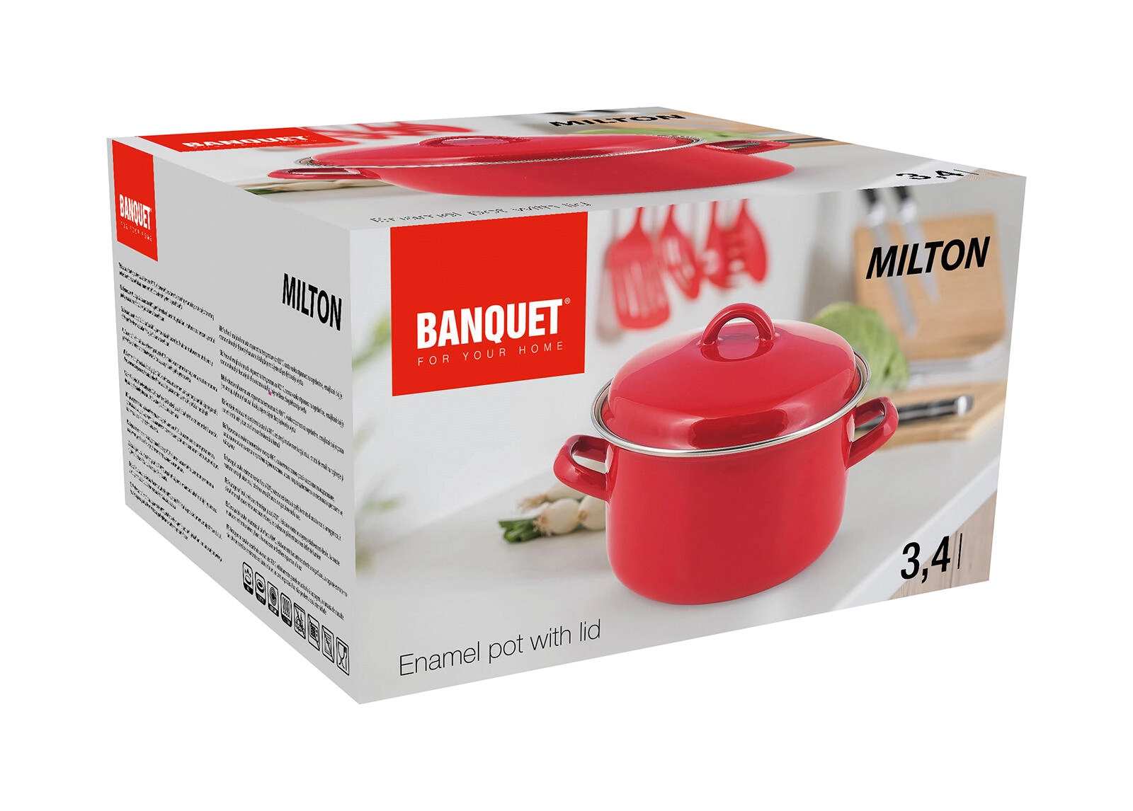 Praktikus, fedővel ellátott 3,4 l űrtartalmú és 20 cm átmérőjű zománcozott fazék, ideális a mindennapi főzéshez. Az elegáns piros színű tartós zománcréteg krémszínű belsővel könnyű tisztítást, egyenletes melegítést és hosszú élettartamot biztosít. Alkalmas minden típusú főzőlaphoz, beleértve az indukciósat is.