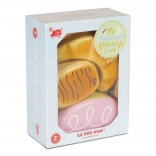 Stílusos fa péksüteményes ládika a LE TOY VAN-tól, amely valósághű boltos vagy konyhás játékot kínál a gyerekeknek. Válogatott kedvelt péksüteményeket és édességeket tartalmaz, fenntartható fából készült, nem mérgező festékekkel van festve, és gyermekkezekhez méretezett. Fejleszti a finommotorikát, a kreativitást és a kiegyensúlyozott táplálkozás alapjainak megismerését.