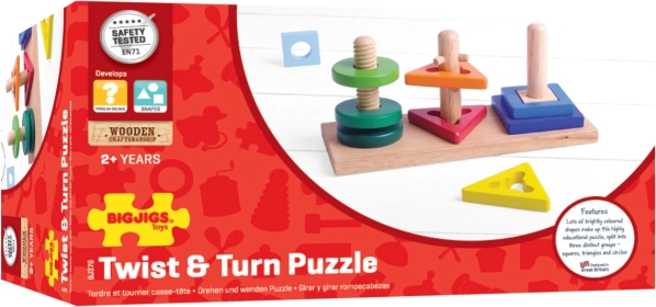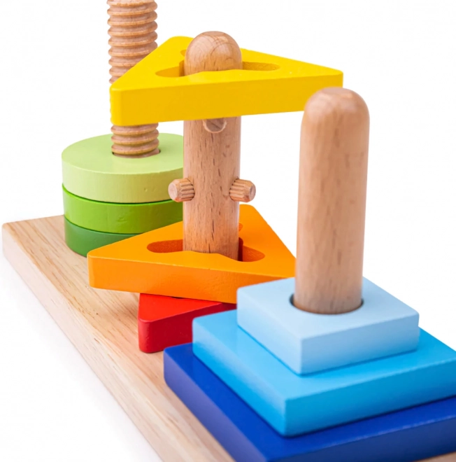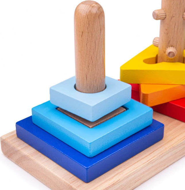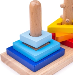 Minden pálcának más a kialakítása a körökhöz, háromszögekhez és négyzetekhez – a gyerekeknek helyesen kell felhelyezniük az elemeket, gyakran egy kis elfordítással.