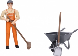Élvezze a szórakoztató játékórákat a teljes Bruder Bworld városi készlettel figurával. A figurának mozgatható végtagjai vannak, amelyek lehetővé teszik különböző eszközök, mint például a talicska, seprű és lapát könnyű fogását. Ez a készlet minőségi ABS műanyagból készült Németországban, biztosítva a tartósságot és a biztonságot a játék során.