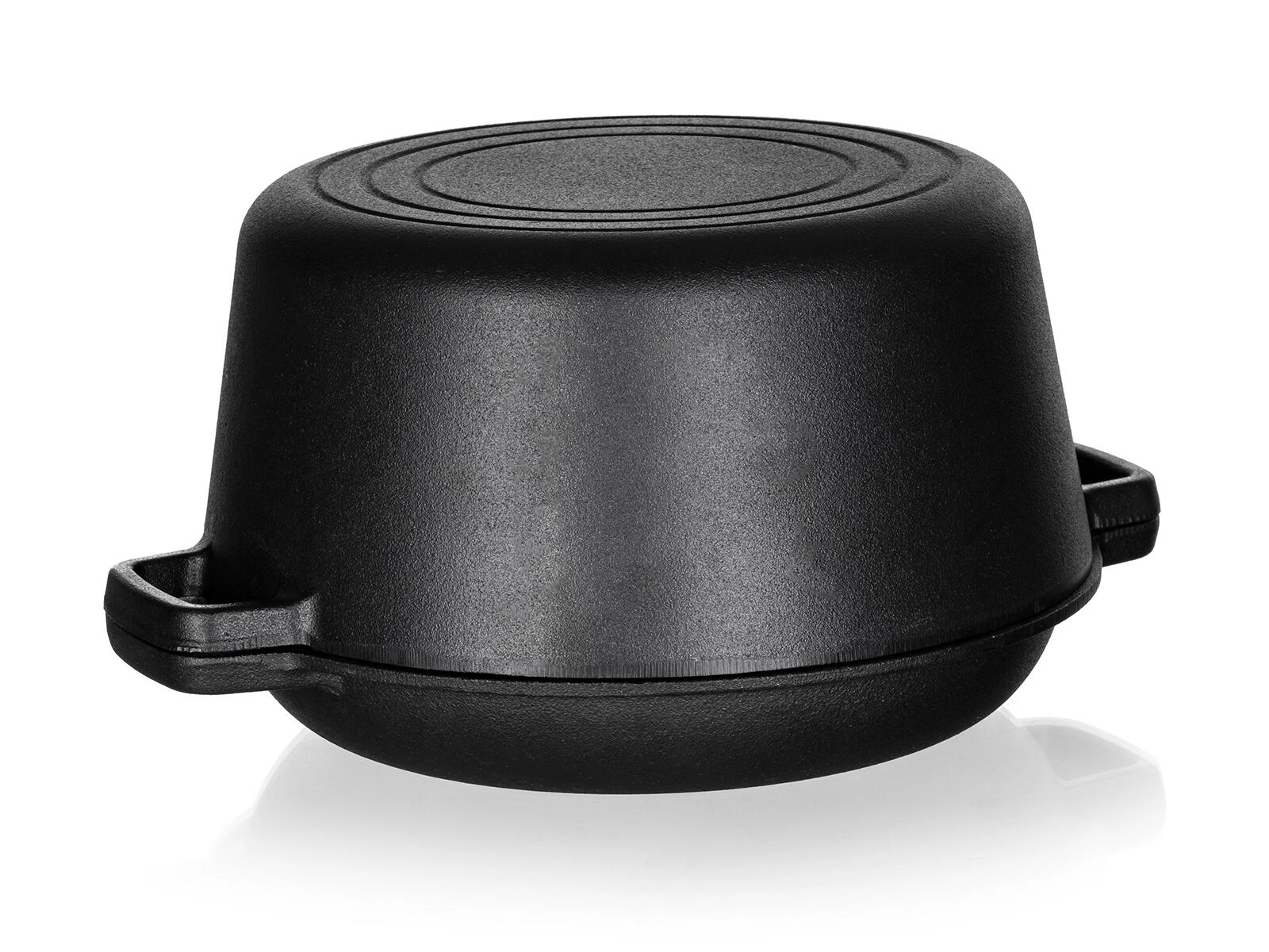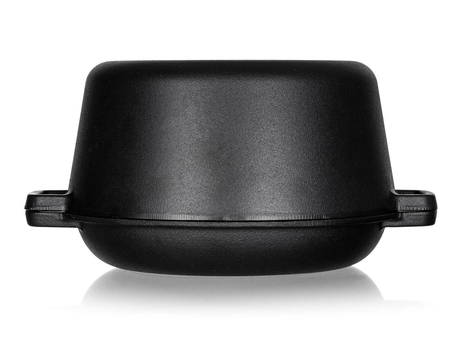 A fedő szoros illeszkedésének és a vastag falaknak köszönhetően kiváló ropogós héjú kenyér sütéséhez, húsok párolásához, levesekhez és rakott ételekhez. Első használat előtt elegendő a felületet beolajozni és kiégetni a sütőben, így természetes tapadásmentességet kap.