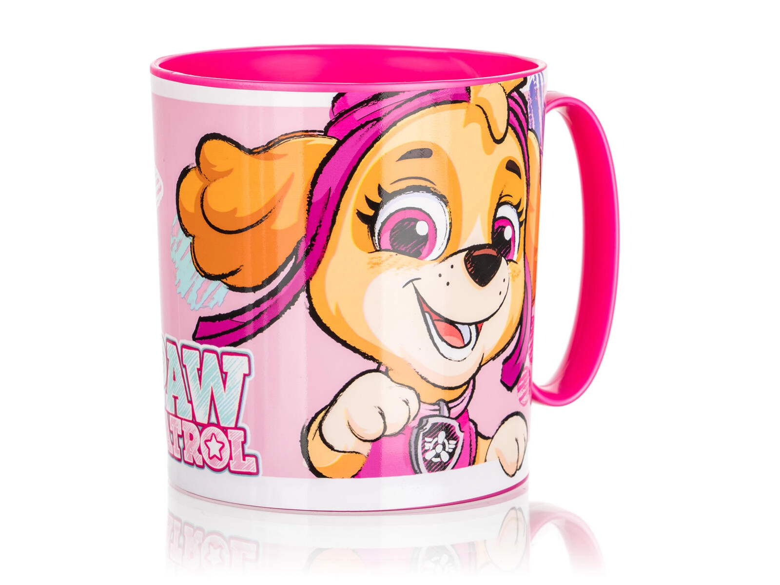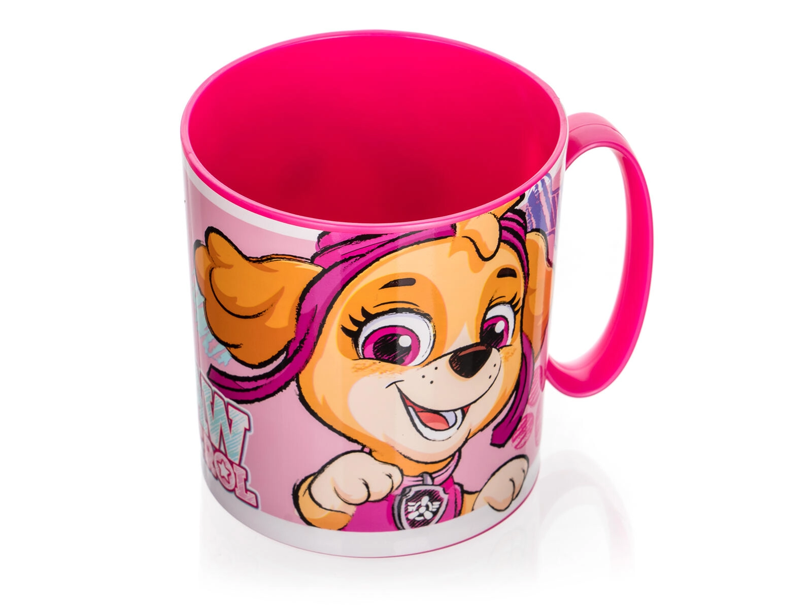 A bögre 350 ml űrtartalmú, így tökéletes vízhez, teához, kakaóhoz és gyümölcsléhez. Anyaga biztonságos és egészségre ártalmatlan, a bögrét ráadásul rövid ideig mikrohullámú sütőben is lehet melegíteni (max. 2 perc 600 W-on). A rózsaszín dizájn és Skye vidám grafikája minden kortyot még örömtelibbé tesz.