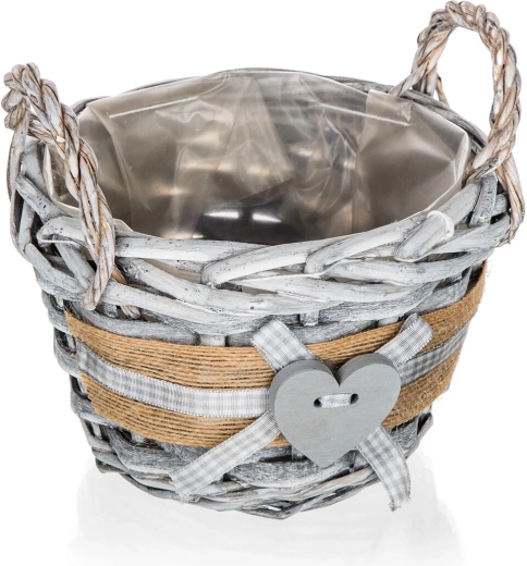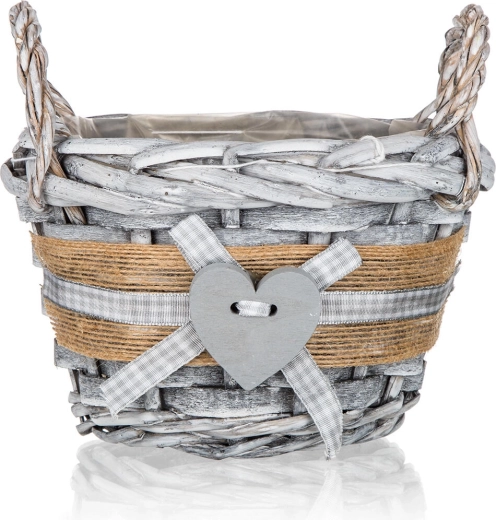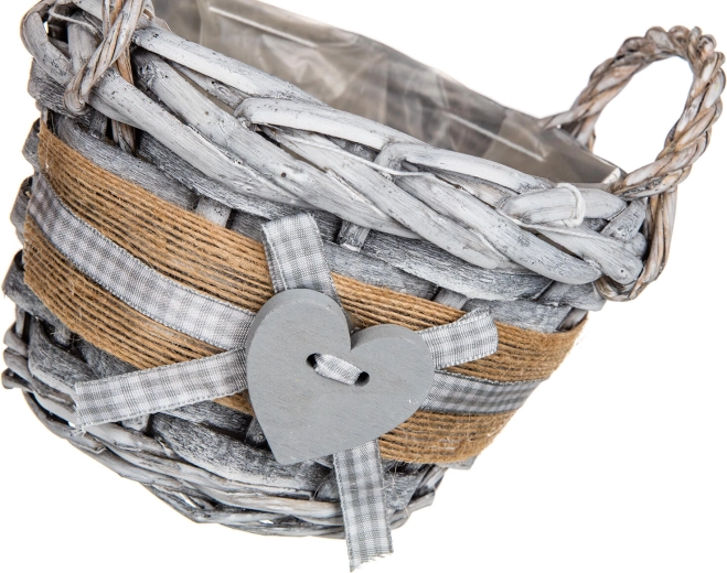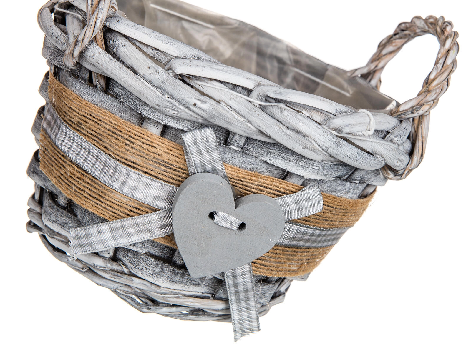 A szürkére pácolt vessző, a jutapánt és a masni dekoratív szívvel stílusos kombinációt alkot, amely meleg, természetes hangulatot kölcsönöz otthonának.
