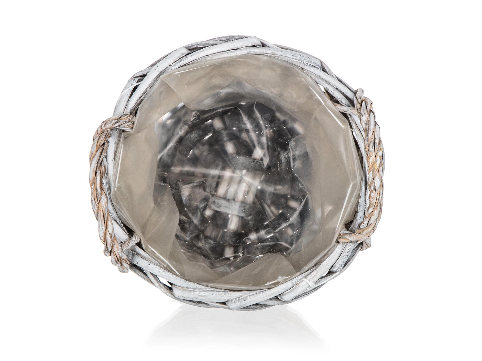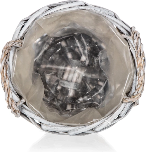 Ez a kerek GRIS fonott kosár meghitt, természetes hangulatot visz a belső térbe. Szürke, patinás kivitele jutapánttal, kockás szalaggal és dekoratív szívvel stílusos kiegészítővé teszi a nappaliba, előszobába vagy konyhába. A belső műanyag betét óvja a felületeket, és lehetővé teszi a dekorációk biztonságos elrendezését a nedvesség kockázata nélkül.