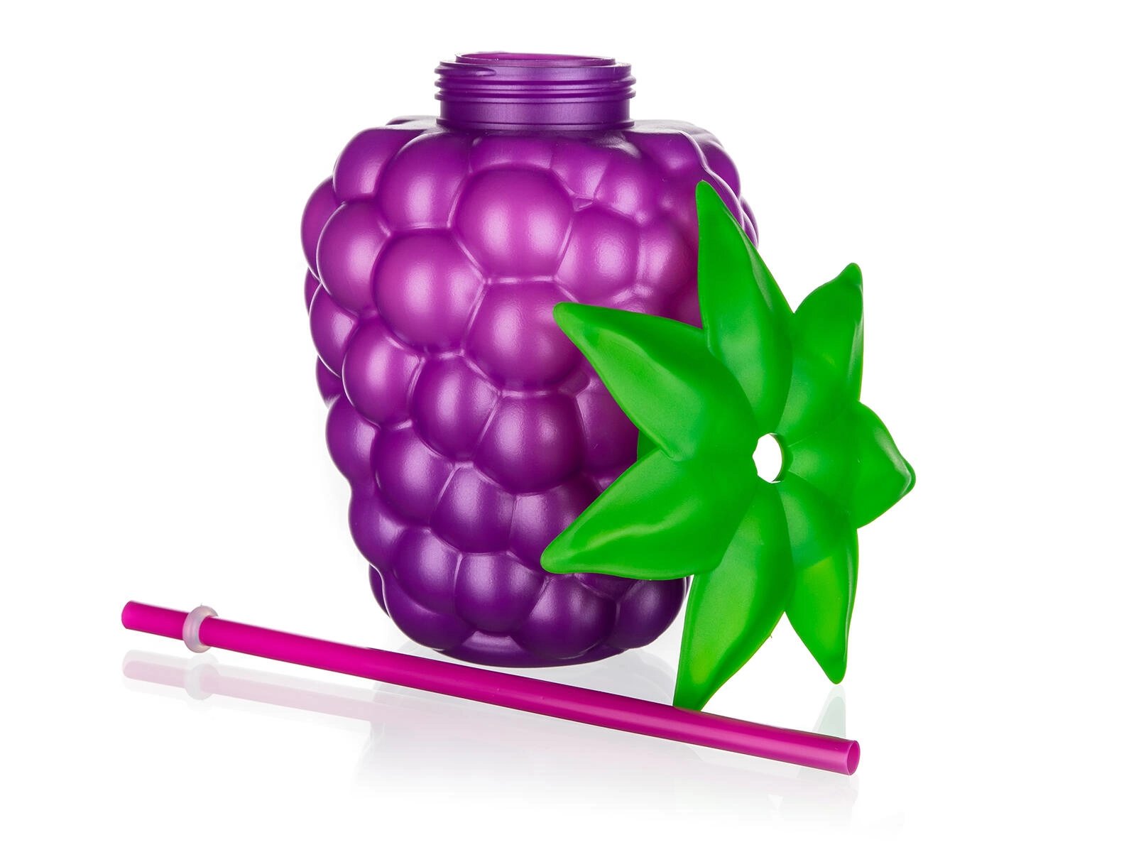 Ez az egyedi, szeder dizájnú szívószálas palack élénk színeivel és játékos, texturált felületével hívja fel magára a figyelmet, amely jól kézre áll, és stílusos kiegészítő bármely nyári bulin. A nagy, 880 ml-es űrtartalom egész napra elegendő italt biztosít, a széles nyak pedig megkönnyíti a töltést és a tisztítást.