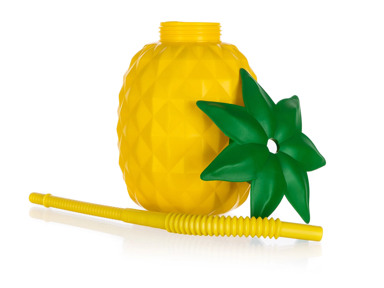 Stílusos, ananász formájú szívószálas palack 880 ml űrtartalommal, ideális nyári felfrissüléshez otthon és útközben. Könnyű, műanyag kivitel, kényelmes ivás a szívószálon át, a játékos Pineapple dizájn pedig feldobja minden korty házi limonádét vagy italt.