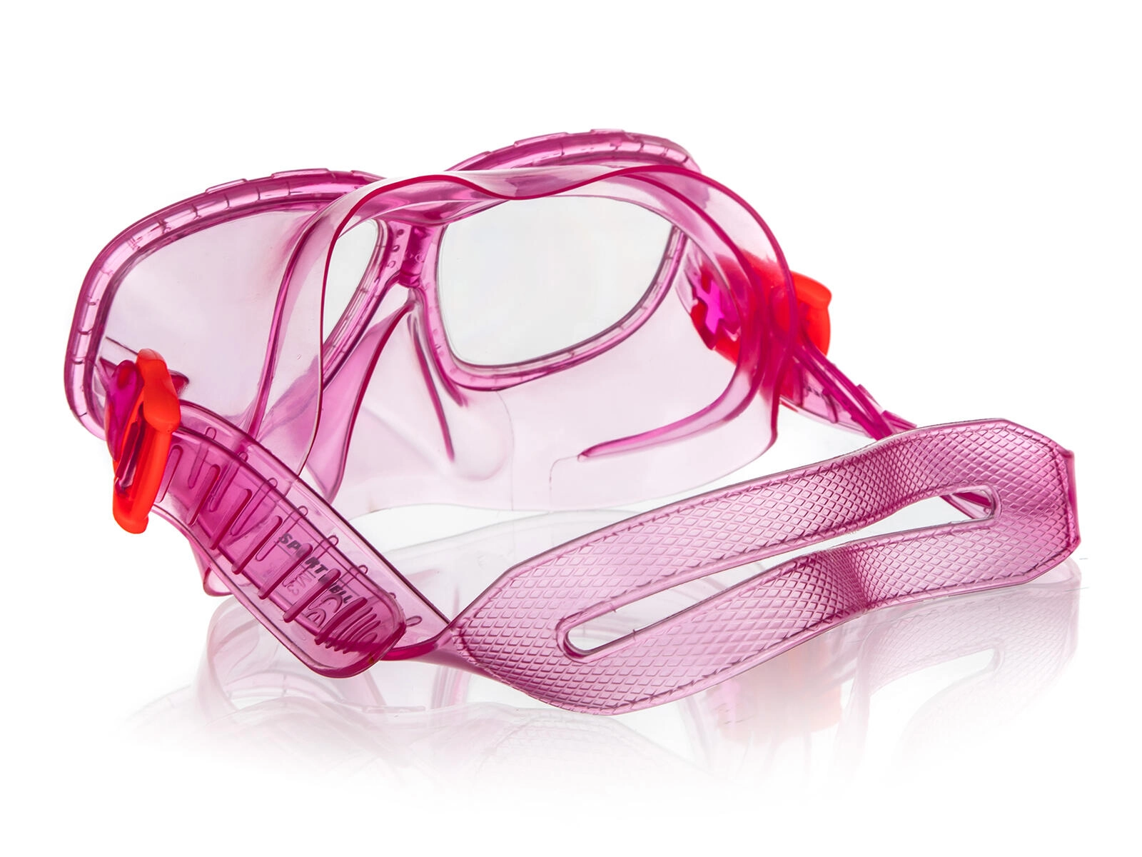 A állítható pántnak köszönhetően a maszk jól illeszkedik a különböző gyerek arcformákhoz. Az osztott látómező jobb perifériás látást biztosít, növelve a kényelmet úszás és vízi játék közben.
