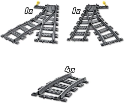 A LEGO City váltók készlet okos bővítése bármely vasúti gyűjteménynek. A egyenes és íves elemek kombinációjának, valamint a működő váltókaroknak köszönhetően könnyedén megtervezheted a részletes vágányhálózatot pontosan az elképzeléseid szerint. Leágazások, kerülők és új megállók – mindez pillanatok alatt.