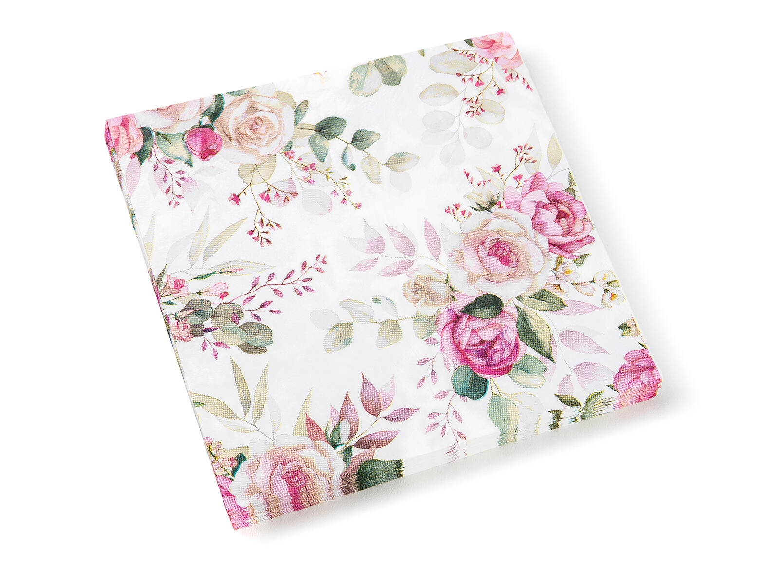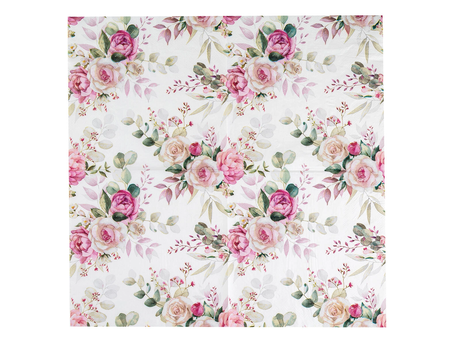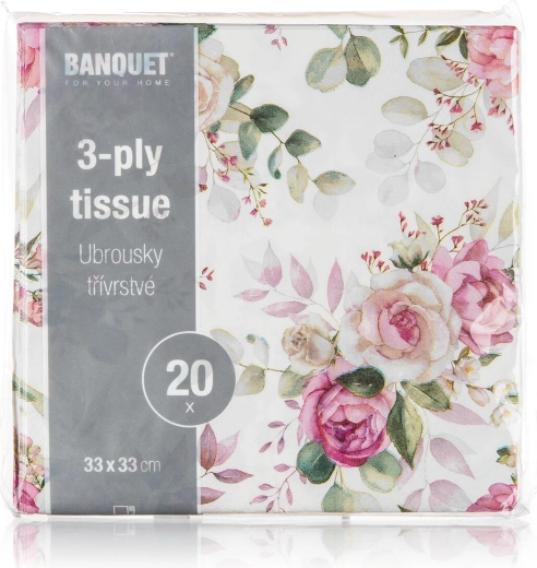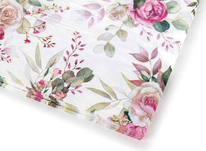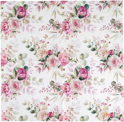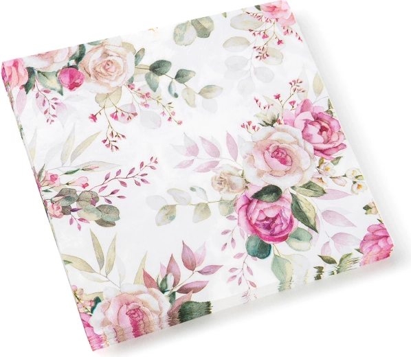 Elegáns papírszalvéták romantikus rózsamintával, amelyek feldobják bármelyik terítéket. 3 rétegűek a jobb nedvszívó képességért és szilárdságért, praktikus 33 × 33 cm méretben, a 20 darabos csomag tökéletes ünnepségekre, esküvőkre és a mindennapi étkezéshez is.