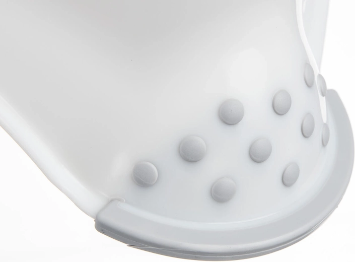 A textúrált felület és az alul elhelyezett gumitalpak minimálisra csökkentik az elcsúszás kockázatát nedves padlón, a fürdőszobában és a WC-n is.