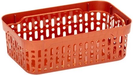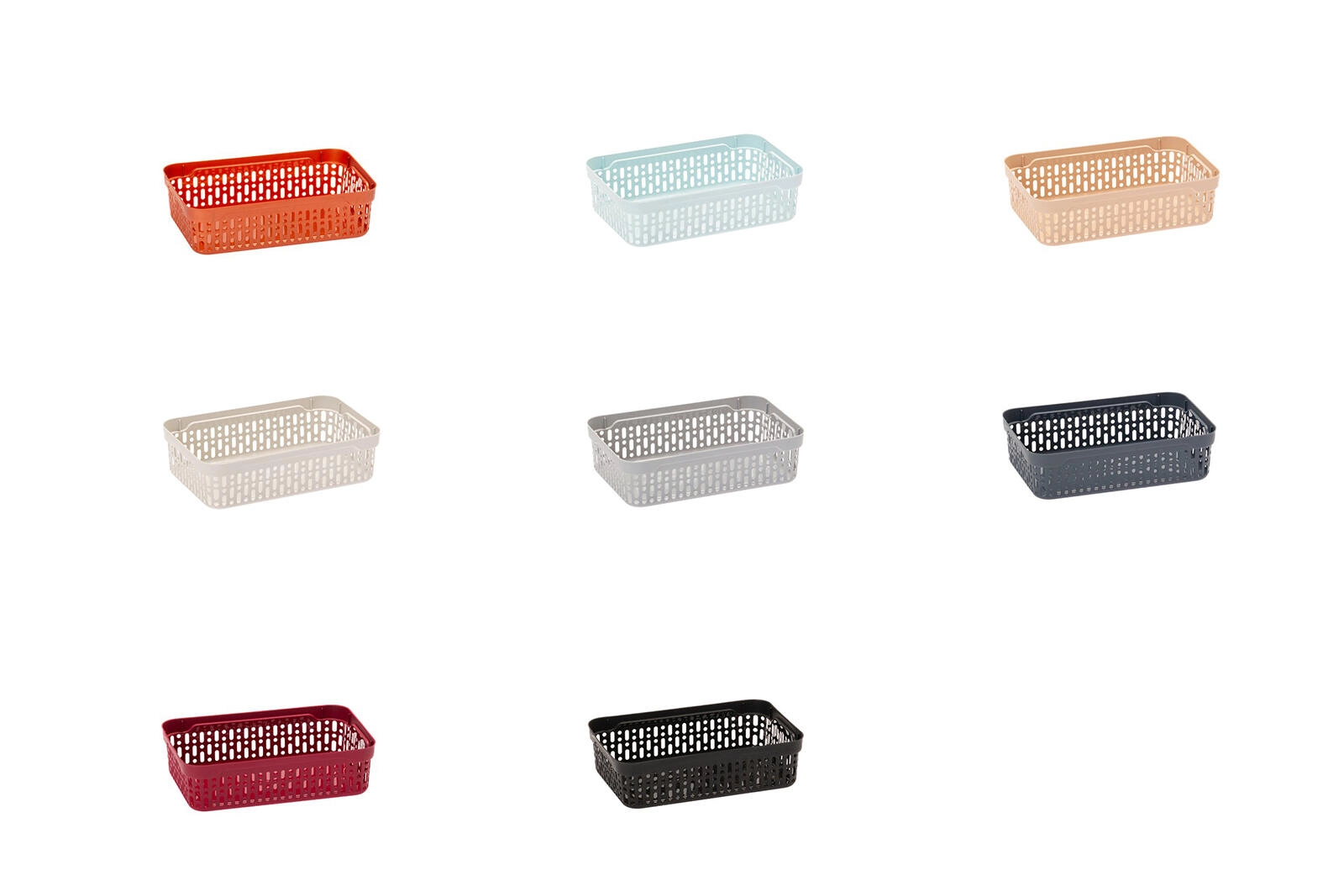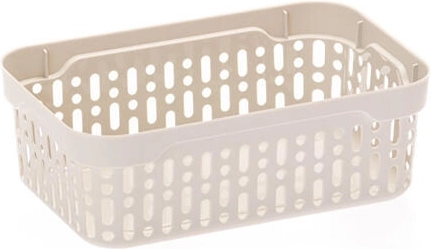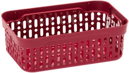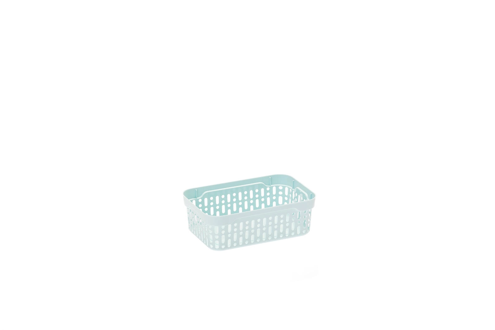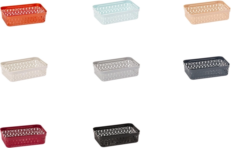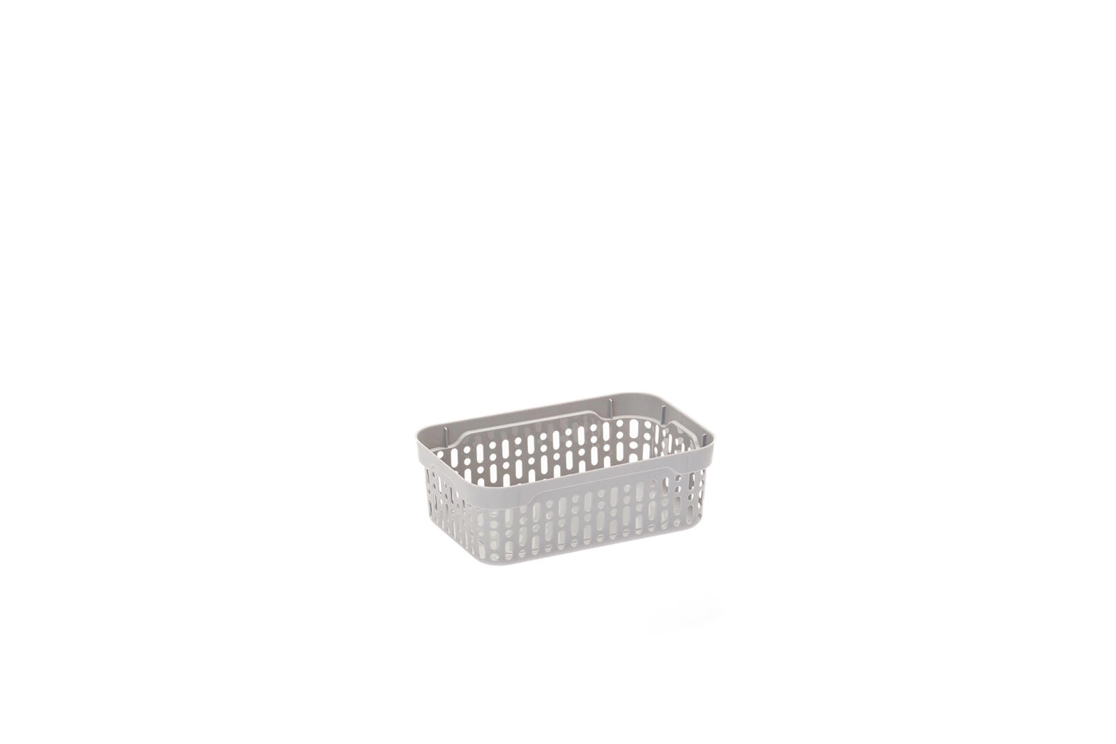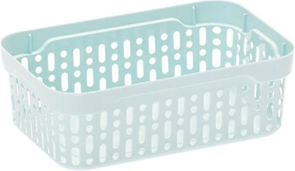 A praktikus MORSETTA műanyag kosár 17,7 × 11,7 × 6 cm méretben ideális apróságok áttekinthető tárolására a fürdőszobában, konyhában, irodában és a gyerekszobában is. A perforált oldalfalaknak köszönhetően biztosítja a jó levegőáramlást és a tartalom gyors vizuális ellenőrzését. Könnyen tisztítható, könnyű, és polcokban, fiókokban vagy az íróasztalon is jól használható.