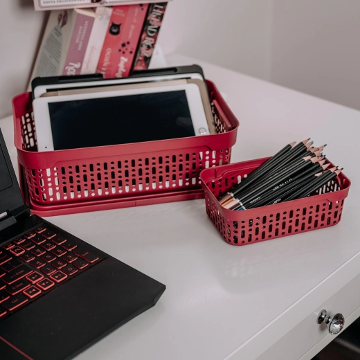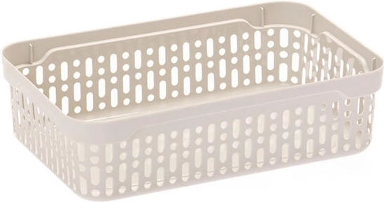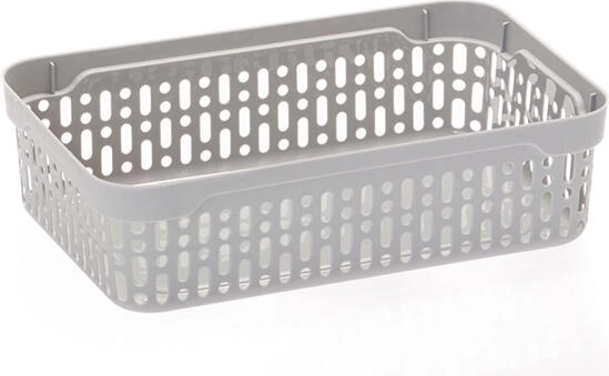 A tartós műanyagnak köszönhetően a kosár könnyen tisztítható, és ellenáll a mindennapos használatnak. Az alacsony profil és a lekerekített sarkok megkönnyítik a kezelést még keskeny polcokban és fiókokban is.