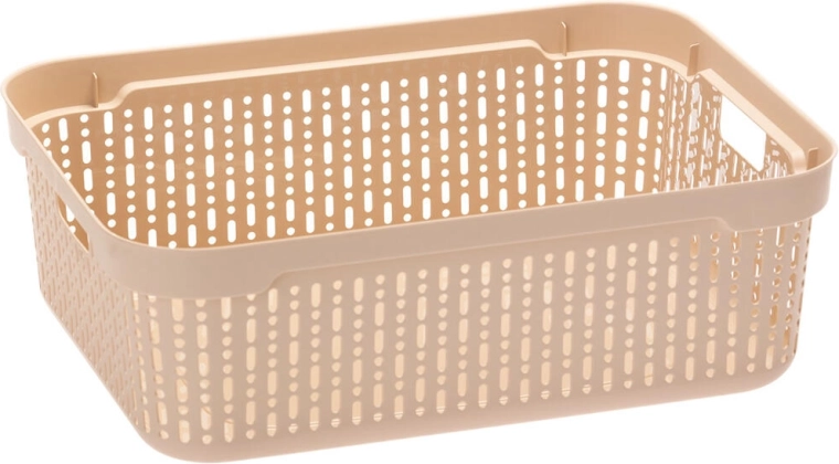 A praktikus Morsetta műanyag tárolókosár 39,3 × 30 × 13 cm méretben ideális az otthon, iroda és gardrób áttekinthető rendszerezéséhez. Tartós, perforált kialakítással a szellőzésért és a tartalom gyors láthatóságáért, integrált fogantyúkkal az egyszerű hordozhatóságért és könnyen tisztítható felülettel. Modern színek keverékében elérhető, hogy illeszkedjen a belső térhez.