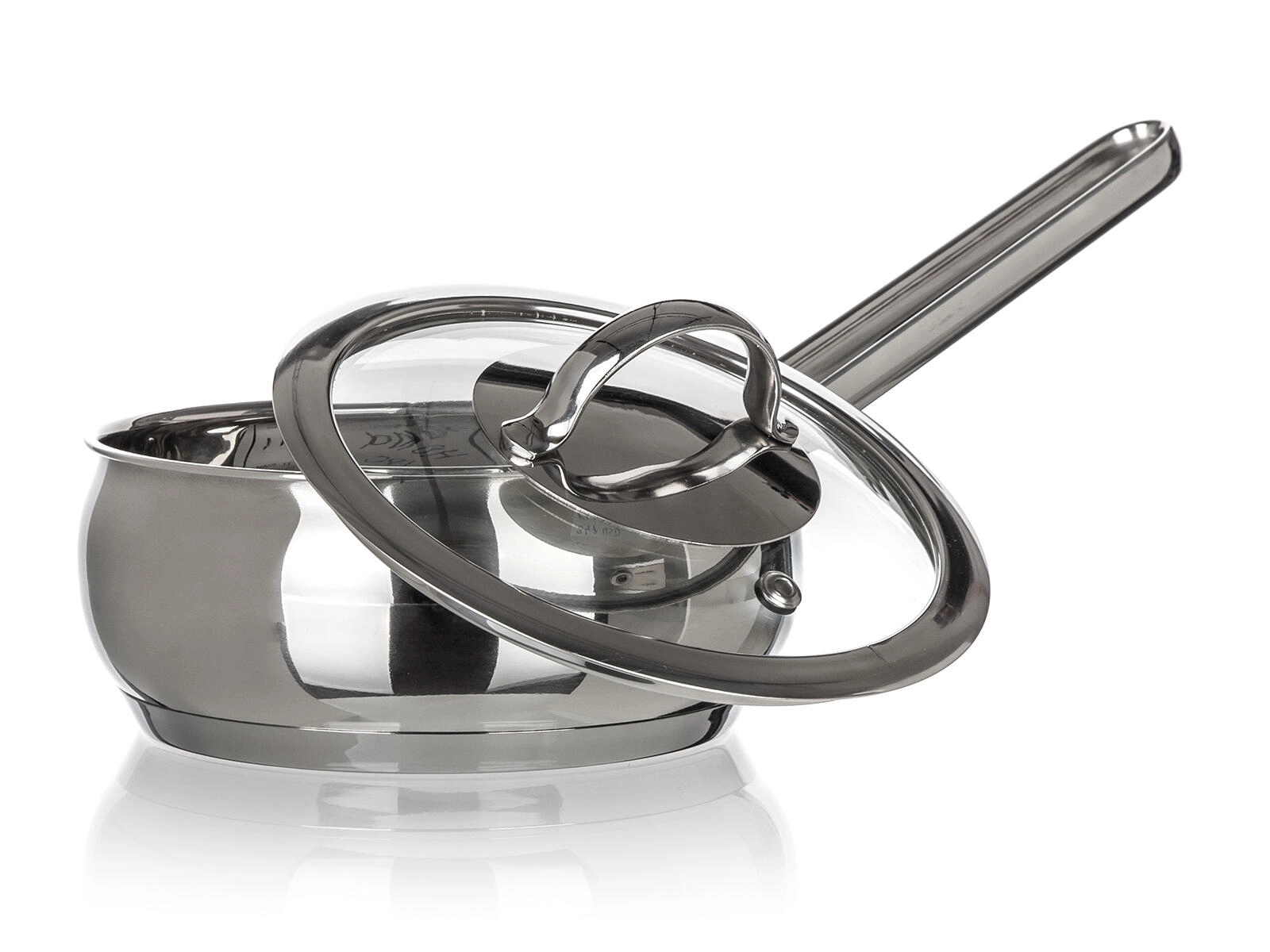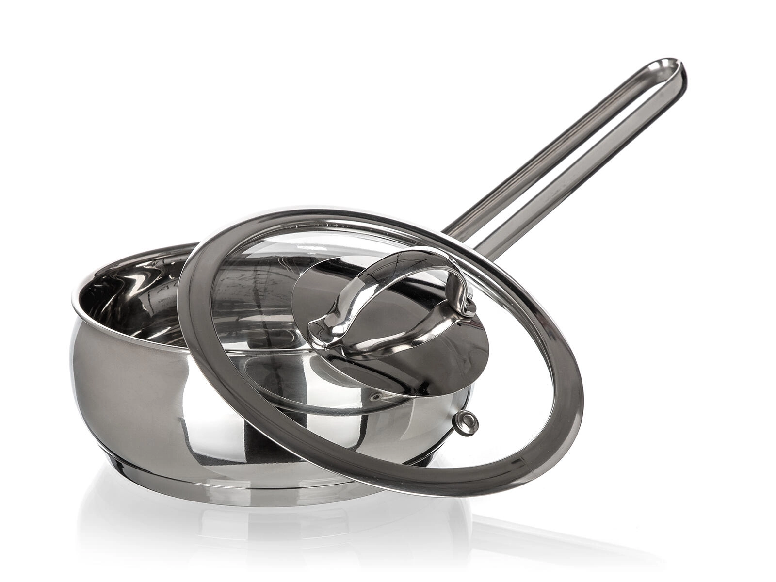Praktikus nyeles lábas minőségi 18/8 rozsdamentes acélból, sík aljjal a stabilitás és az egyenletes hőelosztás érdekében. Az üvegfedő hálós gőzkieresztő nyílással lehetővé teszi a főzés ellenőrzését felesleges hő- és nedvességveszteség nélkül.