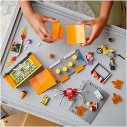 A LEGO City Stuntz Kaszkadőr park lehetővé teszi, hogy felpörgesd a lendkerekes motort és bemutass látványos trükköket. Több rámpával és tüzes akadályokkal a készlet végtelen lehetőséget kínál az elképzelt játékra. Más LEGO City Stuntz szettekkel kombinálva még nagyobb kaszkadőr parkot hozhatsz létre.