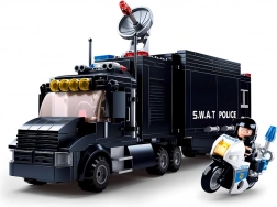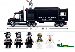 A készlet központi eleme egy fekete SWAT teherautó – mobil bázis valósághű részletekkel, amely minden rendőrségi akció központjaként szolgál. Ideális taktikai átcsoportosításokhoz és bevetések megtervezéséhez.
