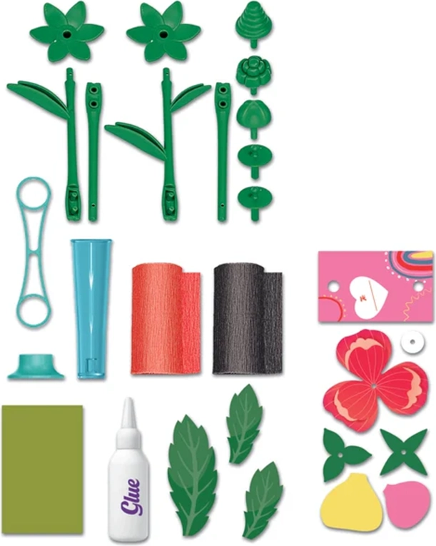 A csomag része egy kártya virágtartóval is, amely könnyen személyre szabható és személyes ajándékként adható a családnak vagy barátoknak. A készlet támogatja a kreativitást, a türelmet és a finommotorikát, és egyben szórakoztató módot kínál a gyerekeknek a formákkal és színekkel való ismerkedésre.