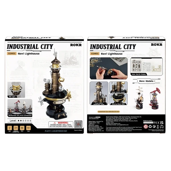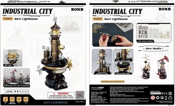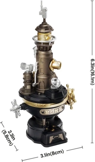 Ez a mechanikus 3D világítótorony-modell a tengeri jelzés- és biztonságtechnikából merít ihletet. A szerkezet három modulból áll: alap redukciós motorral és bolygóműves áttétellel, középső rész mechanikus erőátvitellel és a fénykamra, amely látványos spirális fényeffektust hoz létre. A USB-tápellátásnak köszönhetően az összeállítás után a modell élő dekorációvá válik, egyenletes és halk működéssel.