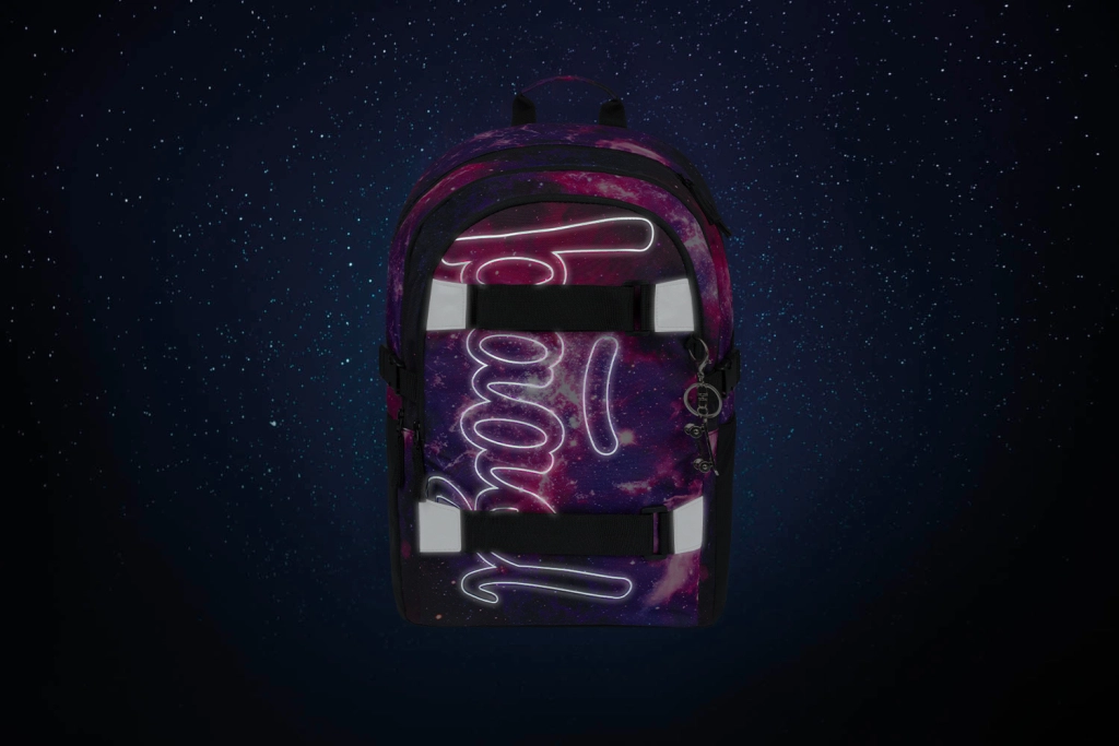 Fedezze fel a teljes iskolai felszerelést egységes, űrinspirált stílusban. Az ergonomikusan tervezett hátizsák 25 l űrtartalommal és mindössze 850 g tömeggel három rekeszt kínál rendszerezővel, zsebet 15"-os laptopnak vagy táblagépnek, oldalsó rugalmas palackzsebeket, valamint elülső pántokat a gördeszka rögzítéséhez. A teljesen állítható váll-, mell- és oldalsó kompressziós pántok tökéletes illeszkedést és kényelmet biztosítanak, míg a fényvisszaverő elemek növelik a biztonságot az iskolába vezető úton.