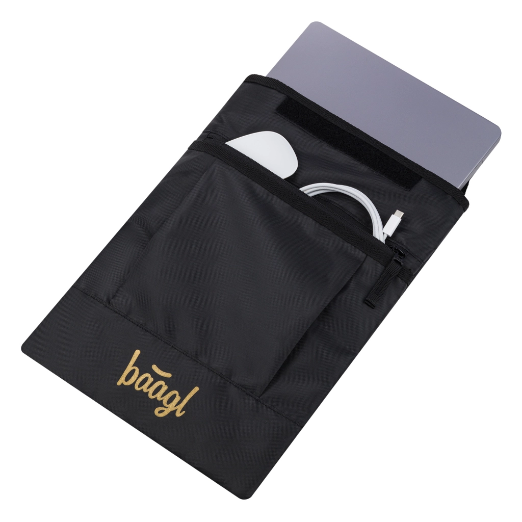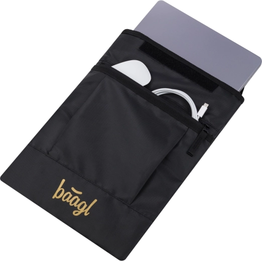 Az elülső zsebben elférnek az apróságok, például a töltő, egér és kábelek, a minőségi YKK cipzár pedig sima nyitást és hosszú élettartamot biztosít. A tok 100% újrahasznosított anyagból készült, így környezetbarát, és remekül összehangolható más BAAGL felszerelésekkel.