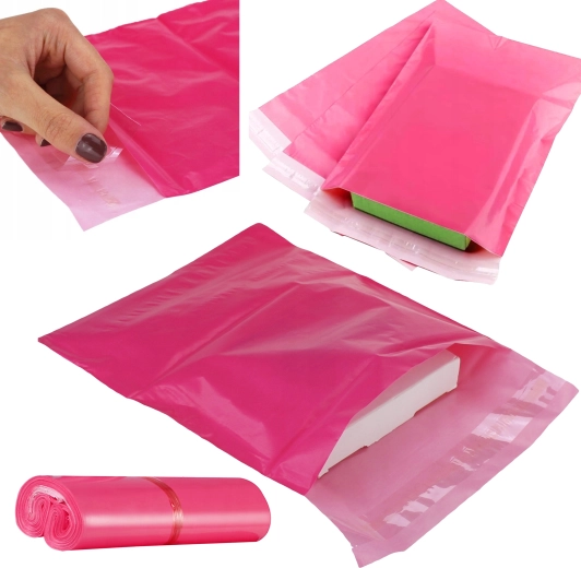 A tartós és rugalmas műanyagnak köszönhetően a tasakok jól alkalmazkodnak a tartalomhoz, könnyűek, és segítenek csökkenteni a szállítási költségeket. Az átlátszatlan rózsaszín felület diszkréciót és modern megjelenést biztosít a küldeménynek.