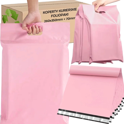 A tasakok minőségi LDPE fóliából készülnek, amely ellenáll a szakadásnak, a nedvességnek, a pornak és a szennyeződéseknek. A fülnek köszönhetően a küldemények kényelmesen hordozhatók – praktikus a futároknak és a végfelhasználóknak egyaránt. A rózsaszín kivitel segít növelni a márka felismerhetőségét, és nyomtatásra, személyre szabásra is alkalmas.