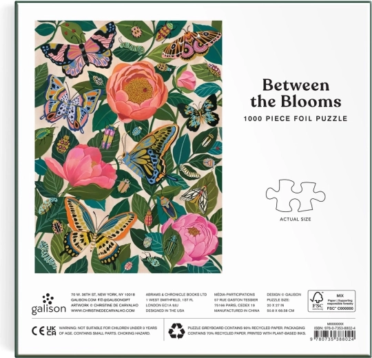 Merüljön el a virágok és levelek harmonikus világában a Galison Virágok között puzzle-lel. A növényekkel, pillangókkal és apró élőlényekkel teli gazdag kompozíció finom színekkel és minőségi nyomtatással tűnik ki. A speciális fóliás elemek csillogást, mélységet és egyedi vizuális hatást adnak a képnek, amelybe minden pillantáskor beleszeret.