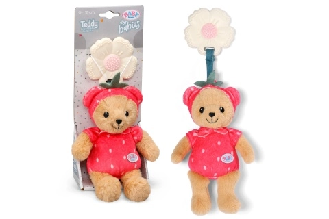 A BABY born mackó – eperke 18 cm szeretettel megtervezett játék újszülöttek és csecsemők számára. A puha plüss és az interaktív elemek kombinációjának köszönhetően fejleszti az érzékeket, megnyugtat és egyben szórakoztat. Az édes epres jelmez első pillantásra magára vonja a figyelmet, és aranyos társsá válik otthon és útközben egyaránt.