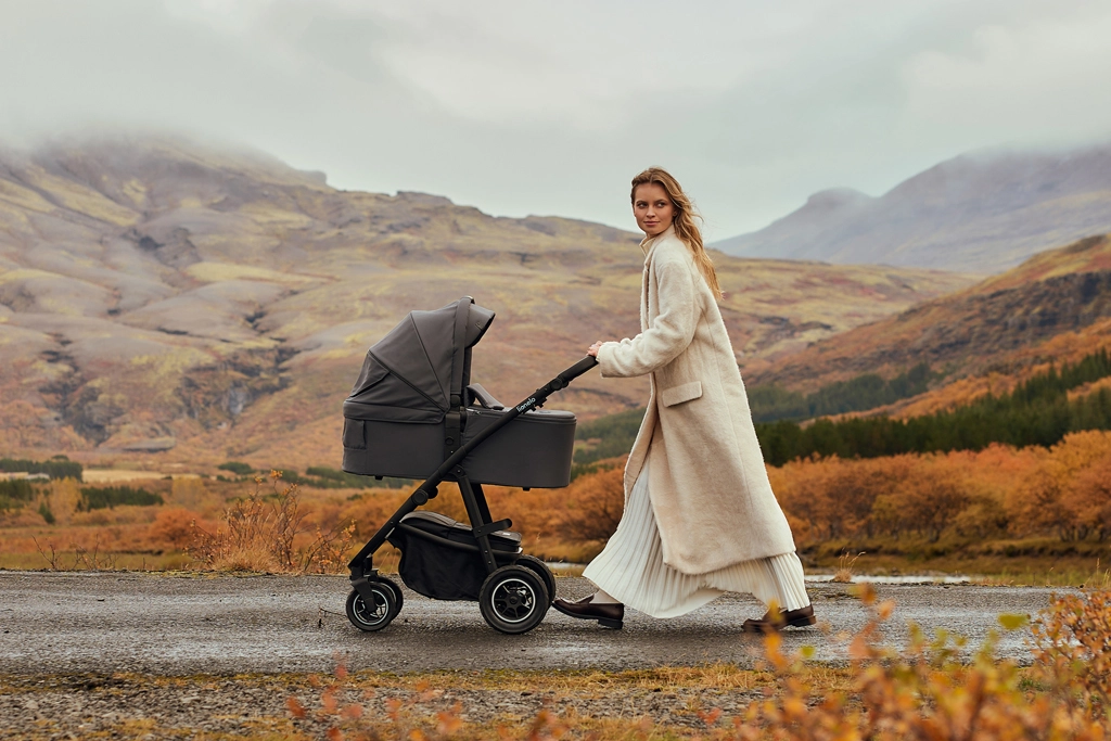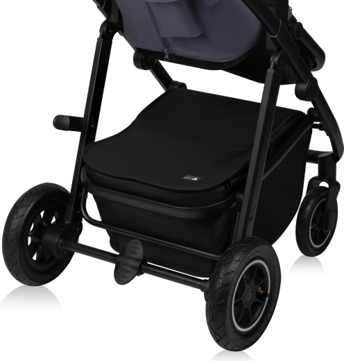 Tartós, vízlepergető szövetek külső UPF+ szűrővel – elegáns megjelenés és könnyű tisztítás. A felfújható kerekek mély mintázattal, a dupla rugózás elöl és hátul, valamint a 360°-ban forgó, rögzíthető első kerekek sima haladást nyújtanak még egyenetlen utakon is. A 3D panorámás szellőzés mágneses zárakkal optimális légáramlást biztosít a forró napokon. A tágas kosár cipzáros fedéllel védi a bevásárlást és a szükséges holmikat a portól.